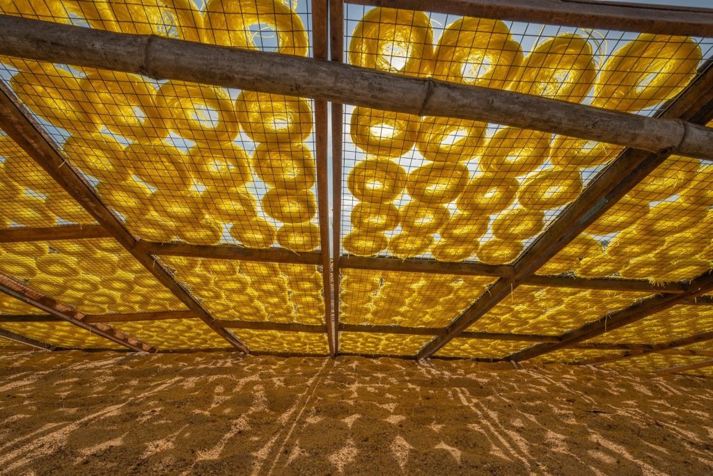 A beautiful photograph requires not only good technique but also an understanding of cultural values. Let your camera tell the story of the resilient mung beans enduring the sun and wind to become the pristine white “fishing line” of everyday life.