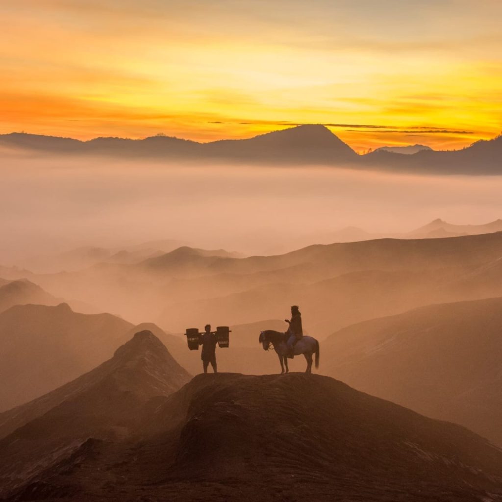 - • Bromo: Capture backlit horse riders and dramatic sea of clouds at sunrise