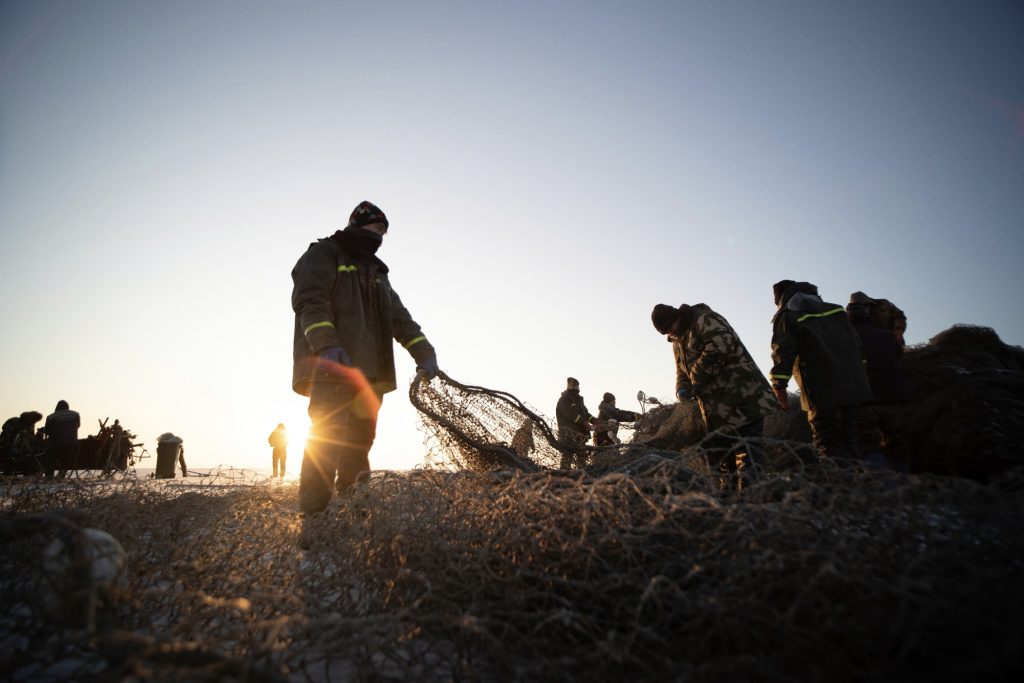 Afternoon: Photograph the final ritual – pulling up the nets under the ice.