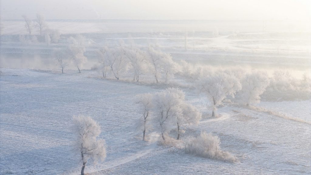 Early morning shoot: Sunrise in the frost-covered forest, the best time to capture the rime and mist typical ofNortheast China.