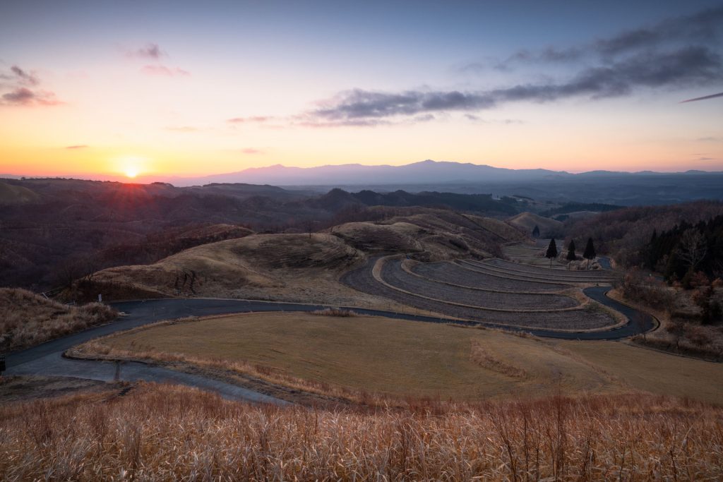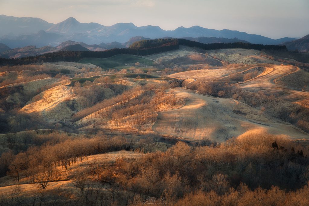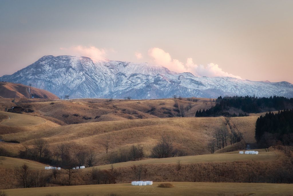C12: Sunset shoot at Makiba Observatory, overlooking the Aso range and golden pastures.