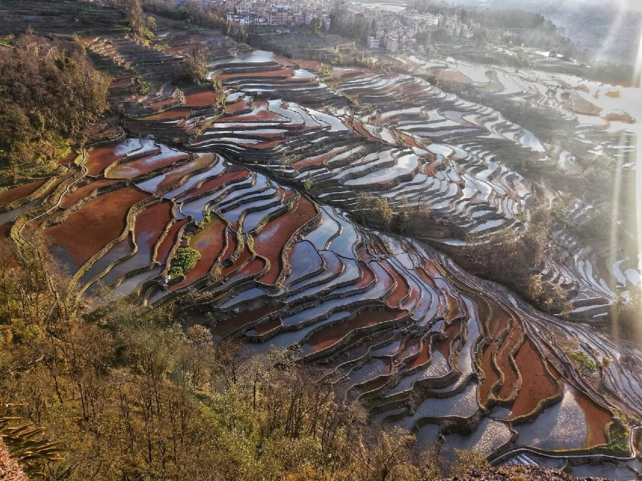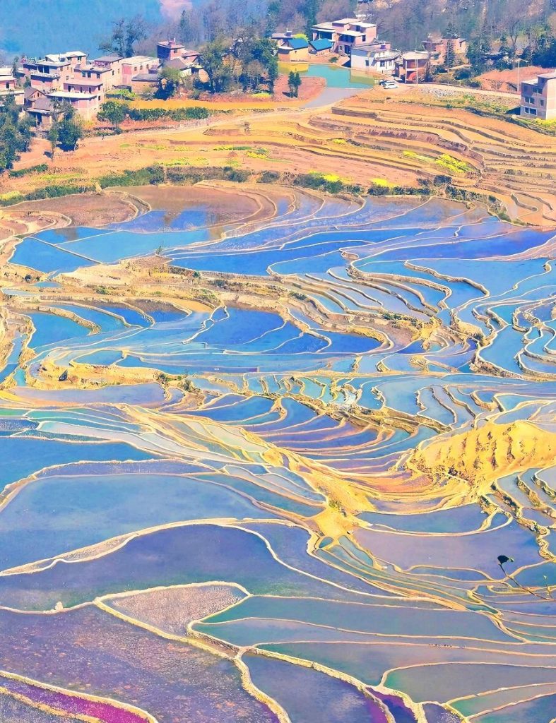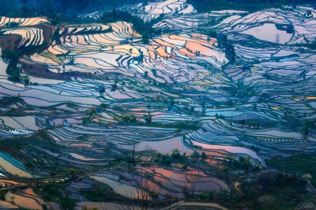 - Capture mesmerizing reflections of clouds and sky on the terraced fields