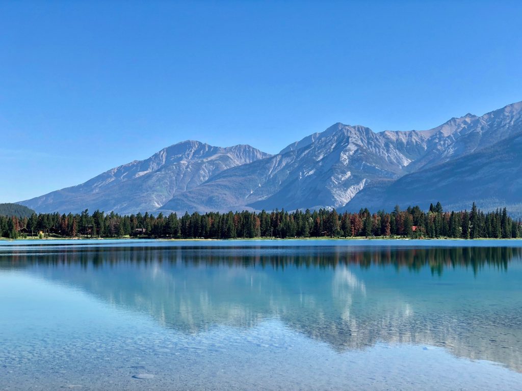 Sayram Lake spans 720 km², crystal-clear and mirror-like, reflecting snow-capped spruce peaks.
