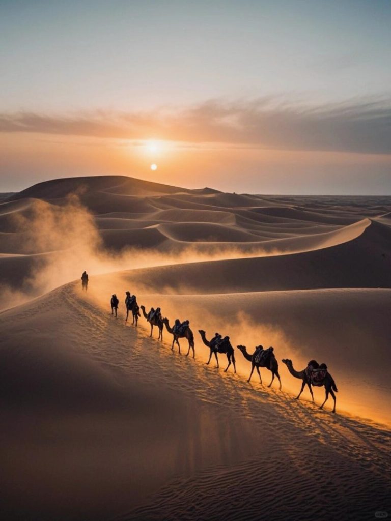 - Camels Crossing the Desert – A slow yet determined journey, symbolic of life’s perseverance.